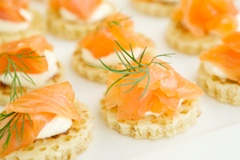 Canapés can be served along with your welcome drink to you and your guests when you arrive back form the ceremony. If you will be posing for your wedding photos once you arrive back at your reception you will want the guests to feel welcome and to start to enjoy the festivities, Canapés a are perfect way to keep things lively. Canapes can be served at other corporate events and parties.